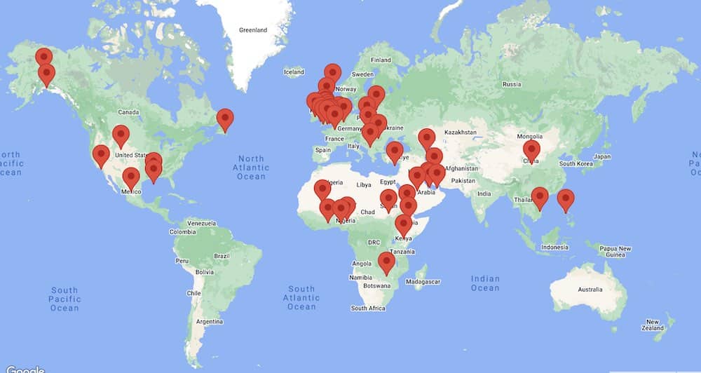 To see the interactive map, please click on the map or visit the geographical experience page